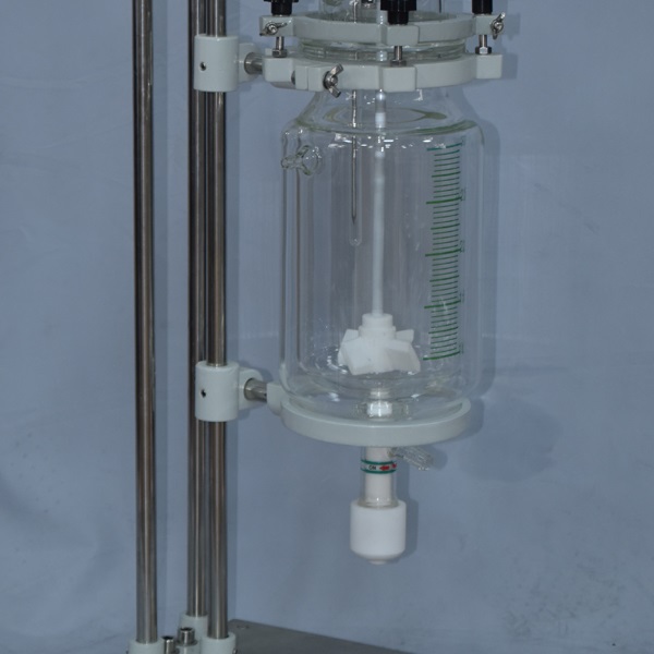 釜底放料閥為玻璃和四氟材質,攪拌無集料死角,放料無殘留及腐蝕。