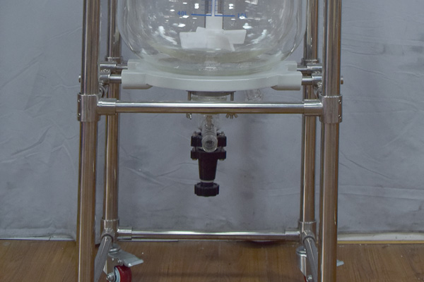 釜底放料閥為玻璃和四氟材質,攪拌無集料死角,放料無殘留及腐蝕。