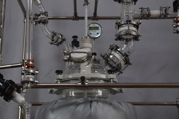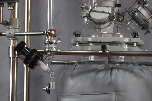 釜底放料閥為玻璃和四氟材質,攪拌無集料死角,放料無殘留及腐蝕。