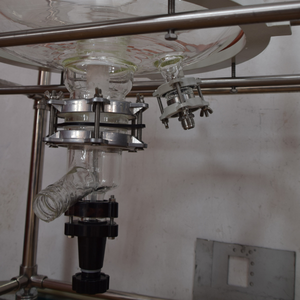 釜底放料閥為玻璃和四氟材質,攪拌無集料死角,放料無殘留及腐蝕。