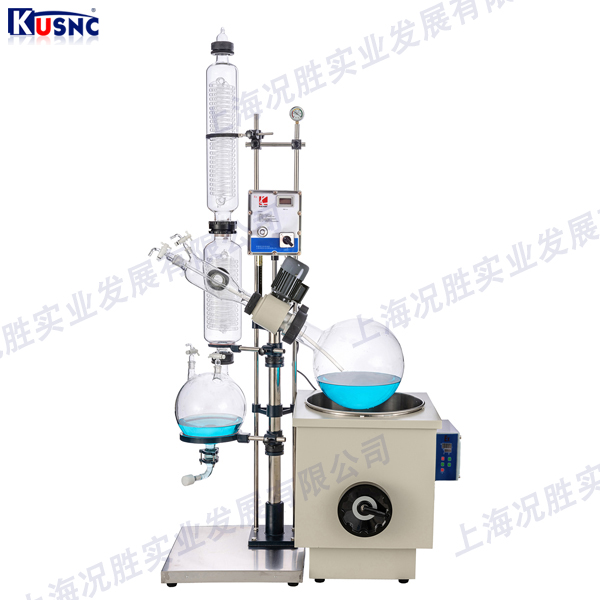 將進料管插入冷凝管。將收集瓶與冷凝管對接,并用瓶口夾將其夾住。將旋轉(zhuǎn)瓶設置在旋轉(zhuǎn)軸的右端,并用瓶口夾將其夾住。將真空管接頭與吸管處的真空管連接,并將另一個接頭與真空泵或?qū)嶒炇艺婵臻_關(guān)連接。連接器分別與冷卻水、進料管連接。