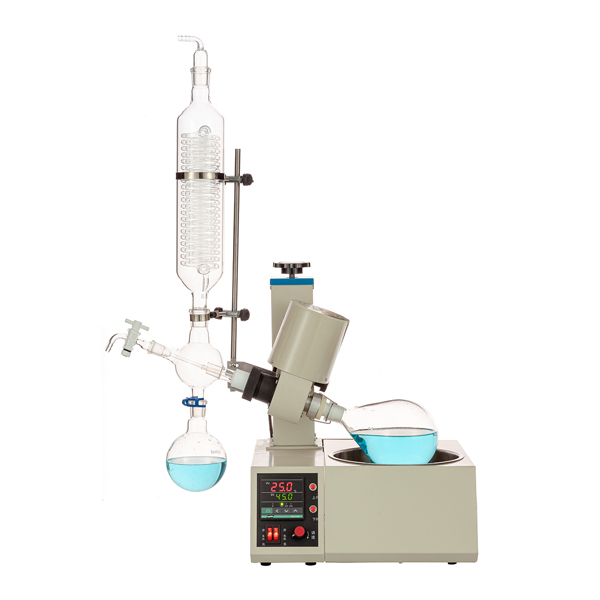 旋轉(zhuǎn)蒸發(fā)器主要用于減壓條件下連續(xù)蒸餾大量揮發(fā)性溶劑。例如蒸餾萃取液和色譜分離時(shí)的接收液。旋轉(zhuǎn)蒸發(fā)器的基本原理是蒸餾燒瓶連續(xù)旋轉(zhuǎn)的減壓蒸餾。作為蒸餾的熱源,一般都配套有相應(yīng)的恒溫水箱。